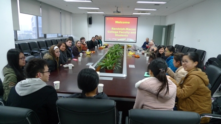 1月15日,美国兰道尔夫-麦肯学院(Randolph-Macon College)交流团师生一行13人,由Thomas W. Porter教授、张德文助理教授率领来bat365正版唯一官网进行交流访问。沈立荣教授率领陈勇、王一然、地里热巴等研究生及廖新浴等本科生接接待了来访交流团并与客人们进行了座谈交流。沈立荣教授向客人们介绍了浙江大学的基本情况及生工食品学院教学、科研与人才培养情况,并向客人们播放了由廖新浴等本科同学编辑英文字幕的“浙大写意电视片”。张德文助理教授介绍了兰道尔夫-麦肯学院(Randolph-Macon College)的基本情况及交流团一行来华访问的内容与安排。