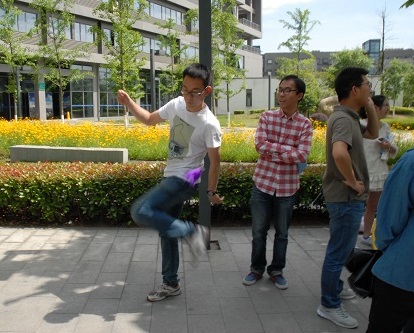 首先开展的是激动人心的拔河比赛,杭城当天32℃的高温也丝毫不能掩盖各位参赛者的热情。学院老师组成的“男神女神队”和学院学生组成的“小鲜肉队”早已按捺不住内心的激动,现场火药味十足。随着裁判一声令下,双方开始奋力拼搏。而比赛的形势似乎从一开始就呈现出一边倒的态势,“小鲜肉队”很快败下阵来,教师代表队赢得了拔河比赛。整齐嘹亮口号和一致的步伐是“男神女神队”获胜的关键因素,而其背后岁月的积淀和成熟的心态或许是更加深层次的原因。而失败的学生代表队也并没有露出失败者惯有的颓势,反而是笑对事实。失败的正确面对方法是坦然,只有这样的失败才能称为成功的铺垫,而我们的同学们似乎早已洞穿一切,相信他们亦从中收获颇丰。