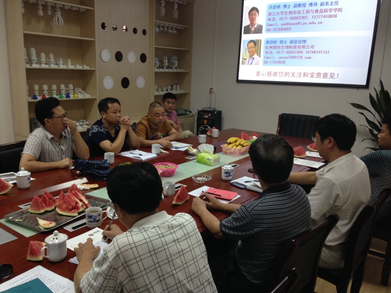 交流会上,受访企业分别介绍了各企业生产及技术应用情况,泮进明副教授详细介绍了其科研成果—“家禽养殖LED特种光源与智能调控系统”技术思路与推广应用情况,何国庆教授、罗自生教授等分别介绍了生物功能物质提取、酶工程技术、食品检测、食品生产工艺等方面的研究情况。双方就“乌鸡养殖中如何利用LED灯的特殊光谱调制和照明时间优化提高养殖品质和效率”、“泰和LED企业能否及如何成为乌鸡照明灯生产基地”以及“如何运用泰和乌鸡和灵芝的养殖优势及种植优势拓展深加工技术,开发食品、保健品、药品等新产品”等内容进行了详细的交流和讨论,并达成了多个项目的合作意向。