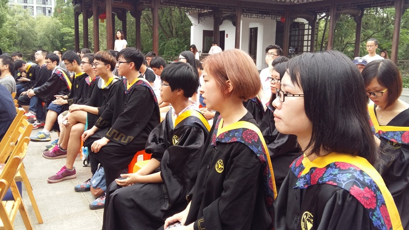2016年6月18日上午, 浙江大学馥莉食品研究院在紫金港校区南华园举行了别开生面的首届毕业生(求是食品1201班)毕业典礼。副校长任少波,宏胜饮料集团总裁宗馥莉,竺可桢学院副院长唐晓武、党委副书记钟蓉戎,校发展联络办副主任、教育基金会副秘书长顾玉林,生工食品学院党委书记楼锡锦、副院长叶兴乾,馥莉食品研究院院长刘东红,馥莉食品研究院各任课老师、学生导师、班主任,以及2012-2015期求是食品馥莉班全体同学与部分毕业班同学家长出席毕业典礼。典礼由毕业班学生马杰主持。