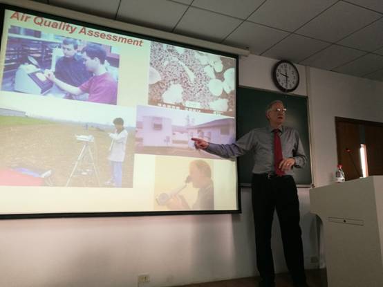 此次访问,Albert Heber专程为bat365正版唯一官网近60位农业工程2013级本科生原汁原味讲授《生物环境工程》专业课程。为了这次课程讲学,Heber教授作了细致的准备:课程开始前,Heber教授提前了解了同学们的学习情况,结合自己多年的教学、科研经验,精心设计教学方案与教学内容。授课前,Heber教授预先将英语教材资料发给同学们进行预习,并在课堂中不定期地安排小测验,及时了解同学们的学习情况。每次上课结束,Heber教授都会布置安排相关的课后练习,以让大家更好地巩固知识。不管课上还是课后,Heber教授都非常注重与本校老师和学生的交流,及时询问、听取同学们对课堂教学的反馈意见,调动了大家的积极性,提高了教学质量。课堂之余,Heber教授还将自己开发的excel数据分析计算程序分享给大家,给老师和同学们提供了新思路。讲学期间,Heber教授向同学们详细介绍了农业环境和空气质量等领域的基础知识与国际科研学术动态,激发了同学们的兴趣,加深了同学们对生物环境工程知识的了解。Heber教授平易近人,课堂教学暨幽默风趣又细心严谨、一丝不苟,赢得了同学们的喜爱和尊敬。