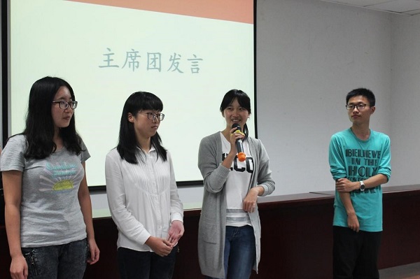 赵文俊学长作为上一届生食团学联的主席,对责任的担当深有感触。他表示站在副秘书这个不同的高度见识到了不同的风景,拥有了不同的心境。与此同时,他还为我们简单介绍了学校的“1+2”的选拔模式,使我们获益匪浅。