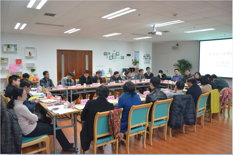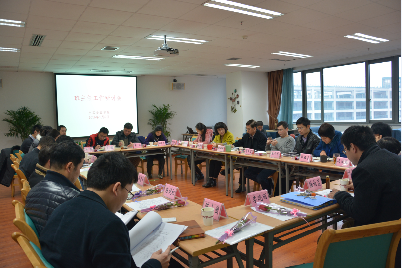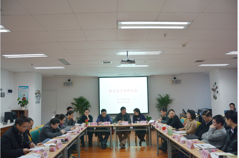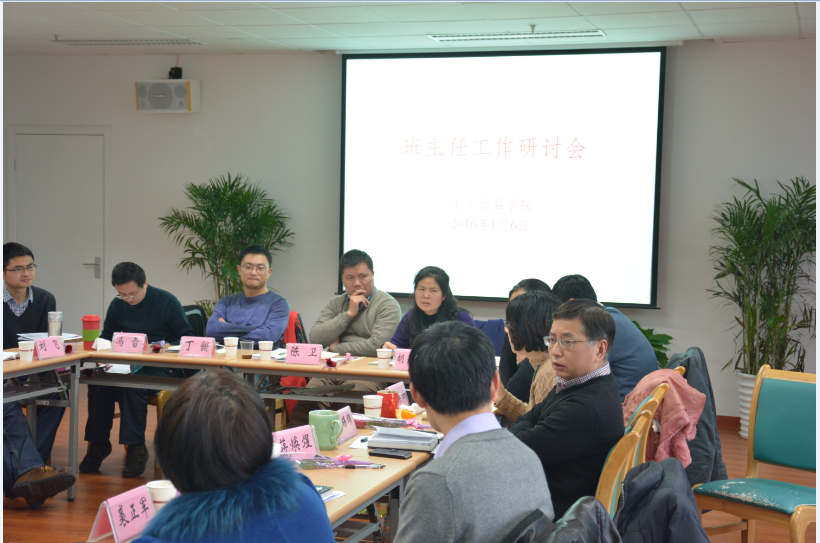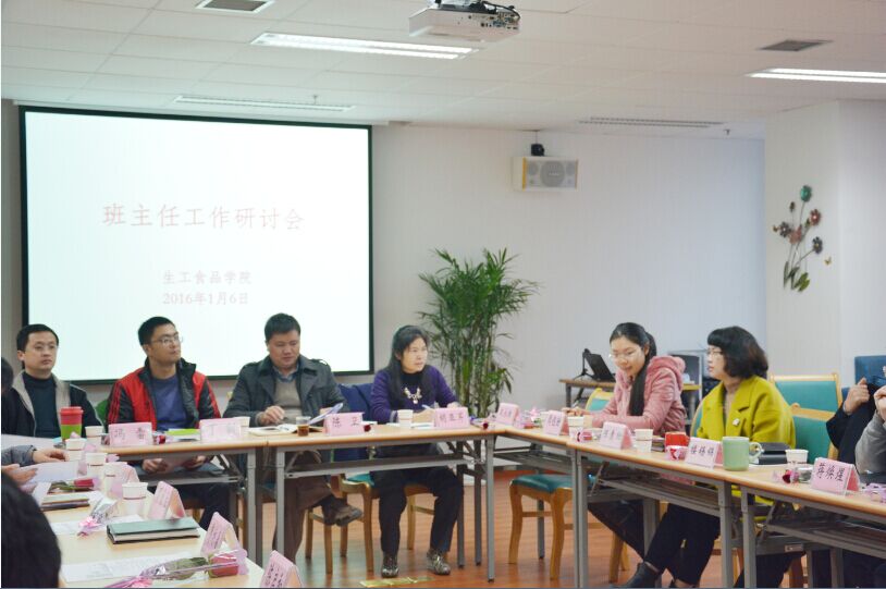 2016年1月6日,生工食品学院期末班主任工作研讨会在农生环组团D422教工之家举行。学院党委书记楼锡锦、副院长蒋焕煜出席,全体班主任老师以及学院本科教学科、云峰学园辅导员、学院本科生辅导员参加。会议由学院党委副书记陈素珊主持。