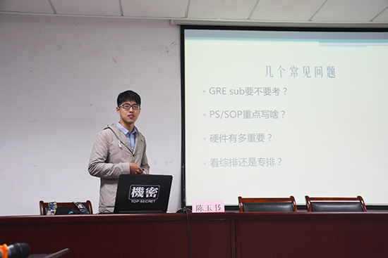陈玉书学长也分享了他的申请经历,包括与国外教授“套磁”的过程。所谓套磁,就是与国外教授通过邮件等渠道建立联系和彼此印象,增大录取的机会。他还分享了一些细节,包括找老师时通过了解其实验室、学生的构成等以找到最适合的老师。最后他解答了“GRE、sub要不要考”、“个人陈述重点写什么”等常见问题。