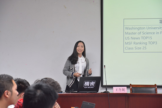 王冬妮学姐申请到了美国路易斯华盛顿大学数理金融硕士,对于金融专业的申请,她有着丰富的经验,因此她详细介绍了商科标准简历的打造。她结合自己申请的经历,指出实习、交流、商赛、软件技能四方面是简历应覆盖的重点,其中最重要的则是实习经历。她说:“企业实习主要是领导力、个人技能、思维能力的发挥,这些都要通过活动经历表现。”另外,她提出了一些建议,首先,多修数学课,弥补跨学科申请专业在一些方面的不足;其次,及早进行商科申请,第一轮申请能增大通过的可能性;最后,她还介绍了跨专业实习的一些小技巧,如可以考一些资格证等。