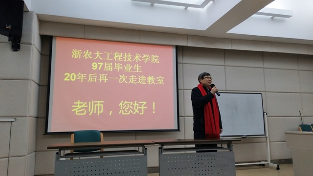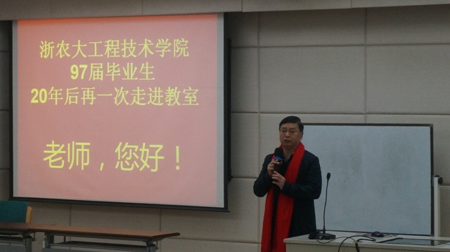 3月5日上午,校友们漫步在静谧的校园,呼吸着华家池畔春的气息,宛若当年,走进教学楼阶梯教室。大家在这里会合,在这里寒暄,在这里叙旧,圆着二十年的浓情相聚。