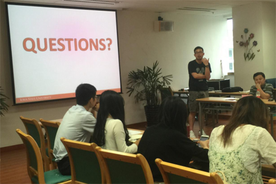 刘凯学长为同学们带来了他的一些出国学习的感悟,在美国攻读博士学位的他认为,尽管中国与美国之间目前存在差距,但总的来说,美国是一个衰落中的帝国,中国是一个崛起中的大国,中国现在很多方面都已经追赶甚至超越了美国。他鼓励浙大的本科生尽可能深造,无论是出国还是国内读研。充分利用浙大的平台,努力让自己各方面发展。同时,作为一名浙大学子,一定要有社会的担当意识,不能做一个“精致的利己主义者”。而学长自己也正是如此践行着,毅然决定学成回国,在国内继续从事研究。学长还和在场的同学们进行了积极的互动,场内气氛十分活跃。