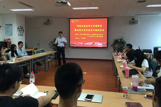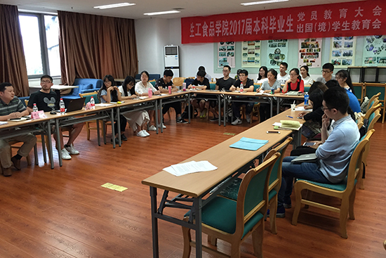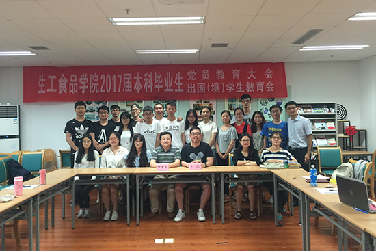 为增强毕业生爱国主义和爱校荣校的责任感和使命感,加强理想信念教育,树立家国情怀,生工食品学院于6月15日举行2017届本科毕业生专题教育。毕业生中的出国(境)学生和党员学生代表参加。优秀班主任代表叶章颖老师以及出国留学归来的博士生代表刘凯学长受邀与同学们分享交流。本科生辅导员张云飞主持。
