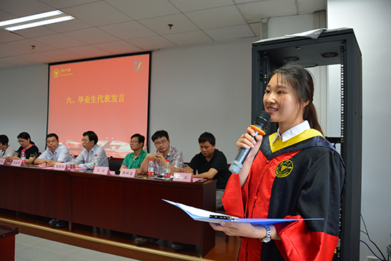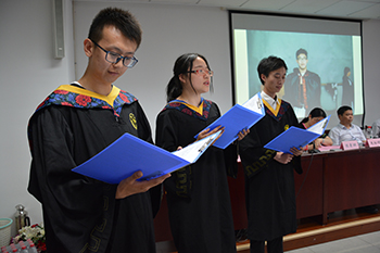 典礼开始,齐唱国歌后,学院党委书记楼锡锦老师宣读毕业生名单及优秀毕业生名单,各位老师为优秀毕业生颁发证书,并向毕业生代表赠送学院精心准备的毕业纪念品。