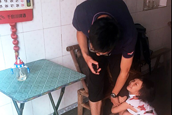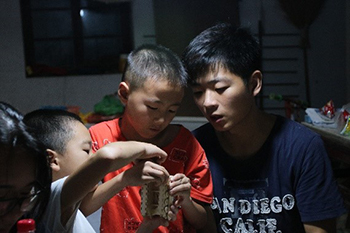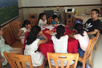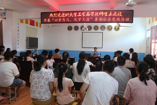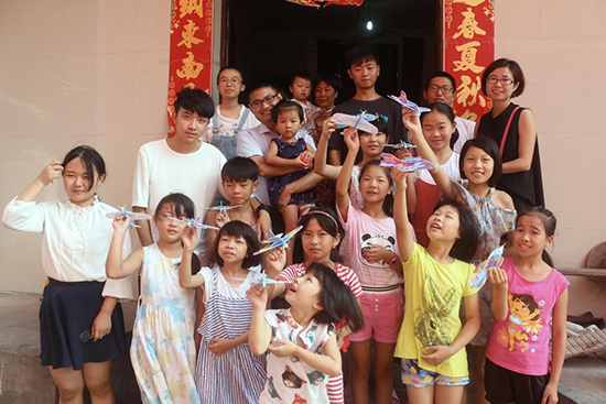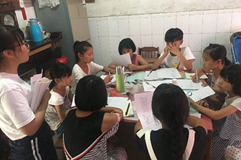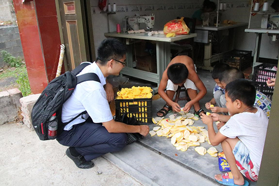 (辅导员带着同学们看望暑期做来料加工的孩子,并做相关调研)