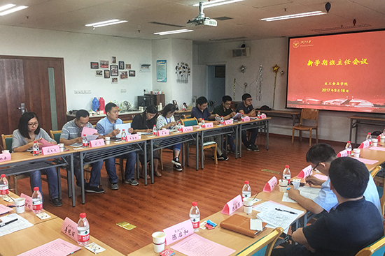 9月26日中午,生工食品学院新学期全体班主任全体会议在农生环组团D422举行。学院党委书记王晓燕老师、副院长徐惠荣老师、党委副书记费兰兰老师,学院本科教学科科长郭亚芳老师及学院各年级各班班主任老师出席,辅导员张云飞老师主持。会议主要围绕近期学生事务及新学年班主任工作开展进行。会上特别邀请冯雷老师和叶尊忠老师两位优秀班主任分享经验和体会。