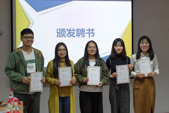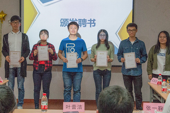 学生会秘书长张云飞老师为主席团和部长团颁发聘书,以表达对他们上一学年工作的肯定以及下一学年工作的期望和要求