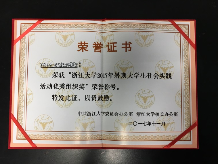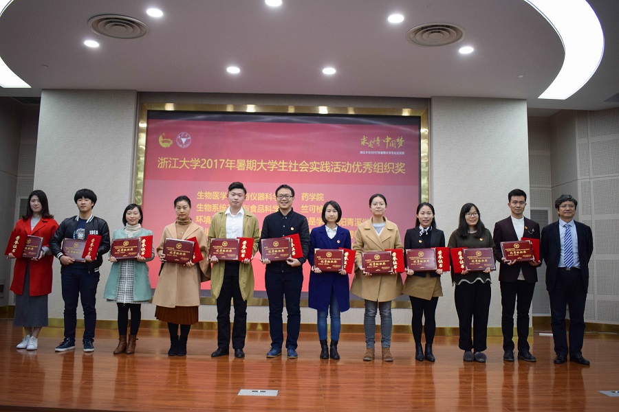 2017年11月27日晚,在紫金港校区蒙民伟楼召开了浙江大学2017年暑期大学生社会实践总结表彰大会,bat365正版唯一官网揽获“优秀组织奖”、“优秀指导教师”、“优秀团队”、“先进个人”、“优秀论文”等多个奖项。