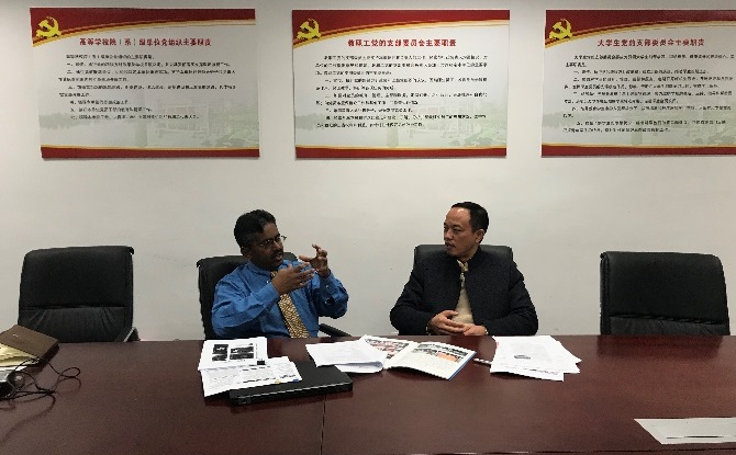 报告会后,学院副院长徐惠荣教授与Gunasekaran教授就双方学院间就学生联合培养等进行了探讨和交流。Gunasekaran教授表示,作为从事食品安全检测方面研究的教授及威斯康星大学麦迪逊分校国际合作处主任,非常愿意并期待能为威斯康星大学麦迪逊分校农业与生命科学学院与bat365正版唯一官网建立学生培养及科研学术交流与合作发挥积极作用。