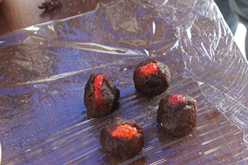 活动现场人影如织,彩旗飘飘,冬日暖阳中顶立的十多张蓝色帐篷映衬着主办方精心制作的美食节易拉宝展架让往来师生驻足赞叹。整个文化广场B区被分成四部分:中部设领票处用于发放“粮票”,同学们在该处领取心仪的粮票后可以赴其余帐篷兑换相应的美食;南面由食品科技协会承包,制作棉花糖饮料、雪梅娘和芋圆椰浆西米露;西边由美食社承包,制作草莓大福和酸辣凉皮;东边由烘焙社承包,制作椰丝糕、双皮奶、木糠杯和蛋白糖。此外还有浙江大学生工食品学院研究生创业团队calowee的友情加盟。面对如此种类繁多甜美可口的美食,同学们早已在各个帐篷前排起了长队,等待着美食的出炉。