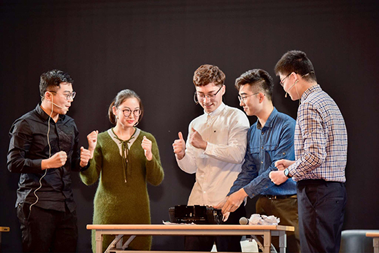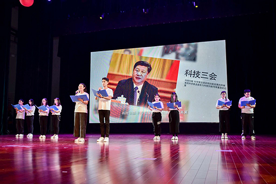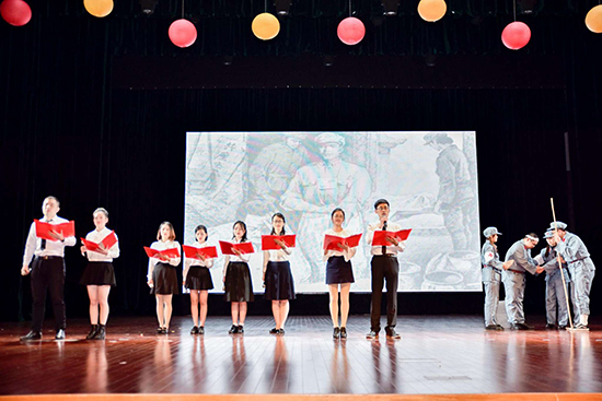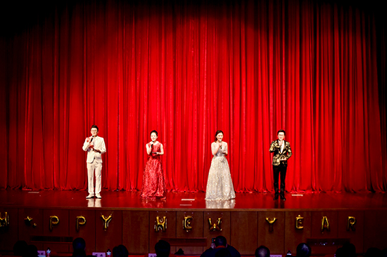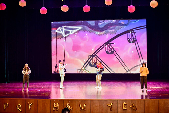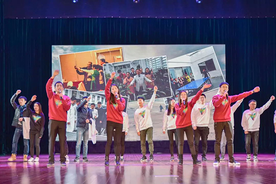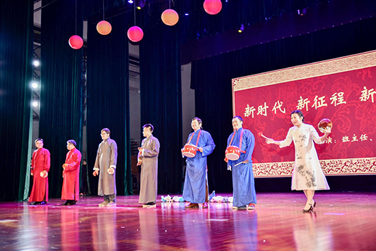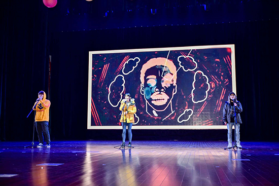 班主任、德育导师代表带来了三句半表演。老师们诙谐的语调,配合敲击乐器,回顾和细数了学校学院发展建设的成就,表达了对学校和学院满满的爱意。这群可亲可敬的老师诠释了这一中国民间说唱艺术,丰富了晚会的节目形式,也传播了满满的正能量。
