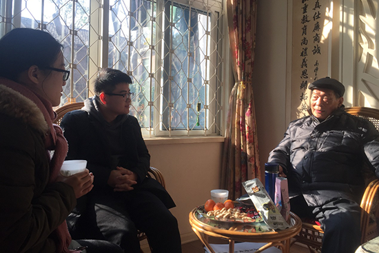 2017年12月19日上午,庄明伟、郑翱翔和张梦垚三位生工食品学院学生党员赴浙大华家池校区拜访看望退休老教师奚文斌老师。奚老师自从55年于浙江农学院毕业,一直在学校工作到96年退休,现在已经87岁。他于57年加入共产党,是一位拥有60年党龄的老党员。
