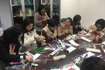 大家边做边交流,在欢声笑语中,时间过得格外轻快。