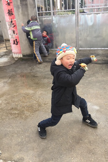 2月24号,我在经过孩子们的父母同意后,将他们聚集在一起,陪他们玩游戏,给他们分发糖果,给他们讲故事。他们是那么的天真无邪。和他们接触时,我的心仿佛都要被他们融化了。最后他们还开心地要拍摄“剪刀手”照片,灿烂的笑容融化了冬天的冰。