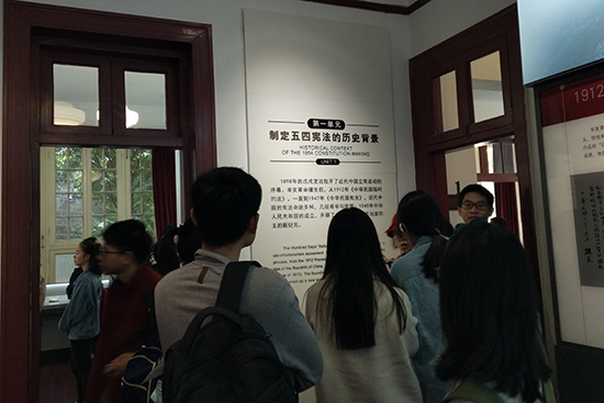 为深入学习贯彻党的十九大精神,全面推进依法治国,进一步增强社会主义民主法治意识,弘扬爱国奋斗精神,2018年11月10日上午,生工食品学院组织研究生预备党员一同前往位于西湖北山路畔的五四宪法历史资料陈列馆参观学习,辅导员张云飞老师带队。