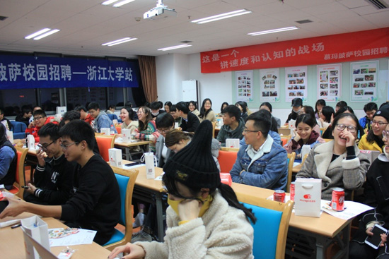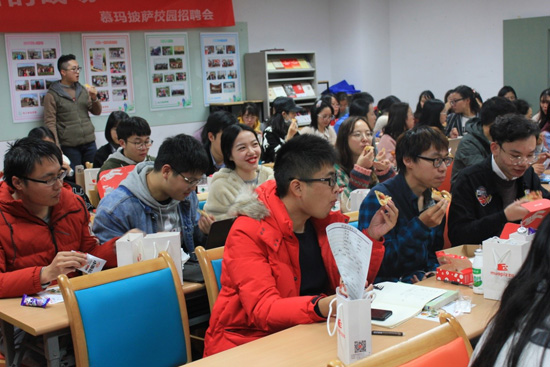 2018年11月23日晚,浙大食品专业201届校友顾叶挺带着他的企业“慕玛披萨”在农生环D楼422举行招聘会。来参加的同学不仅有即将找工作的毕业生,还有大一大二、研一研二的同学。