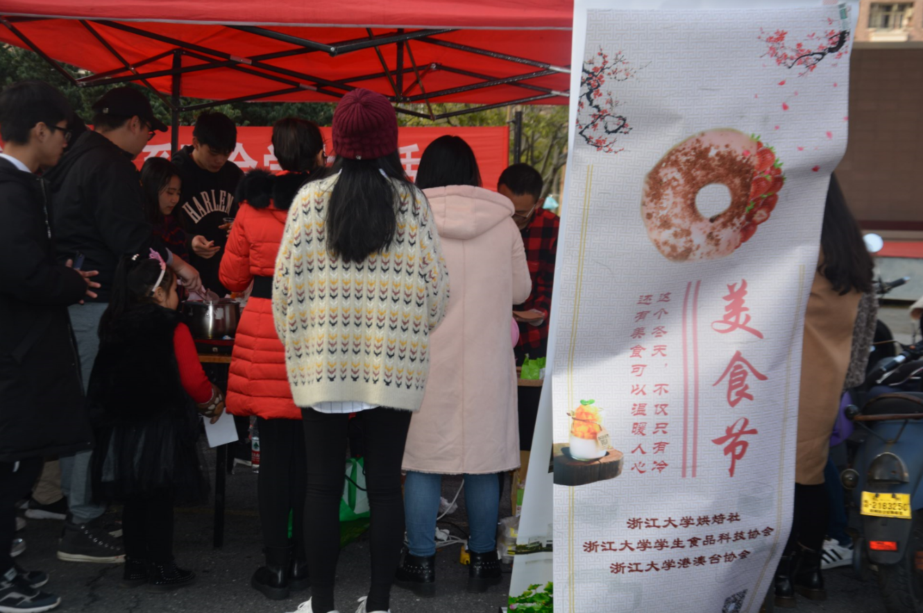 2018年12月23日,浙江大学学生烘焙社、浙江大学学生食品科技协会和浙江大学港澳台协会在文化广场共同举办了浙江大学美食节。