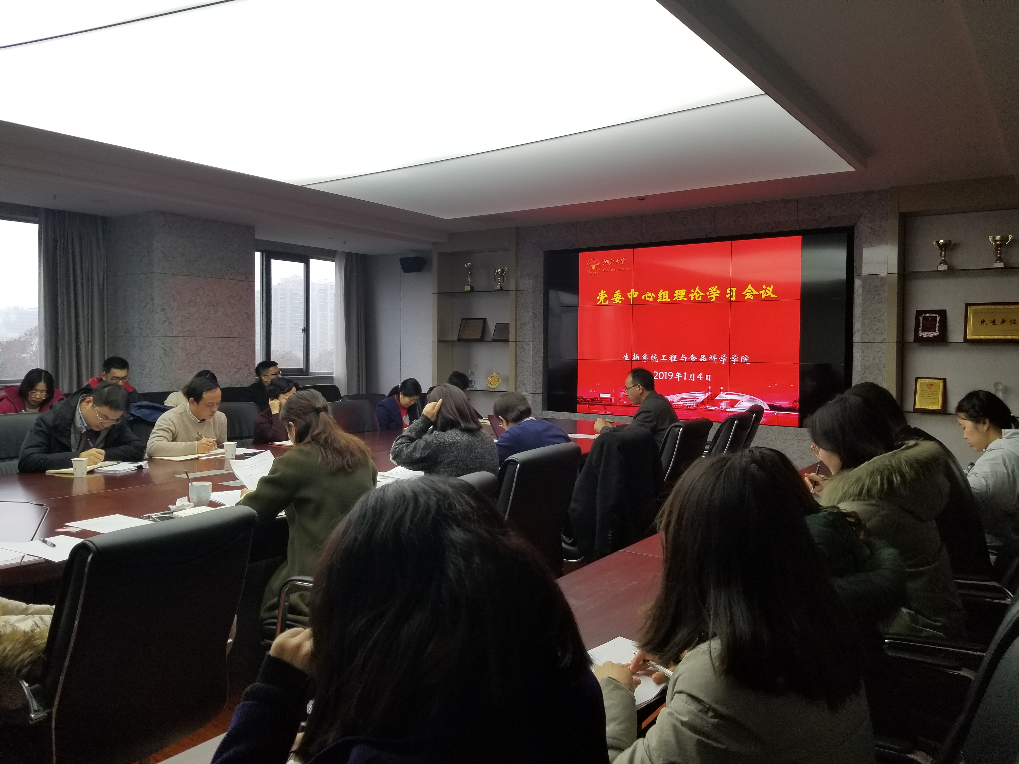 2019年1月4日下午,生工食品学院召开党委理论学习中心组扩大会议,深入学习习近平总书记在庆祝改革开放四十周年大会上的讲话精神。学院党委委员、各党支部书记参加会议。