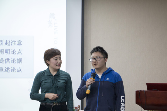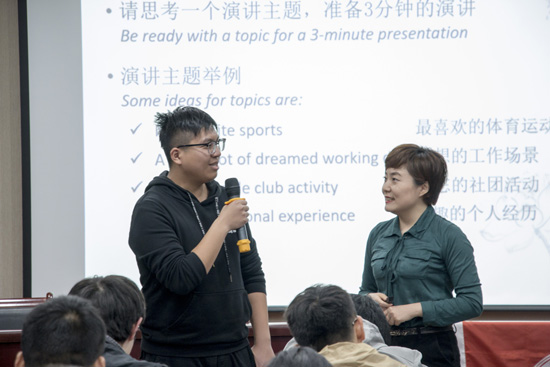 在两个小时的上课时间中,刘老师风趣幽默的授课方式引起了同学们阵阵掌声。在欢声笑语中,同学们对“自信演讲”有了深入的理解。
