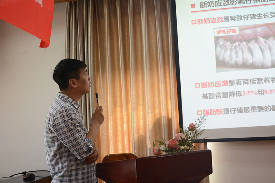 第四位分享嘉宾是来自动科院的吴纬澈学长,曾获国家奖学金,动科院“荣誉学子”等,并以第一作者发表SCI 5篇。吴纬澈学长就其研究内容“肠道物理屏障与脂肪酸吸收的内在联系及影响机制”进行简要介绍,并结合自身经历,强调做研究时不能仅仅局限于自己的研究领域,还应广泛涉猎,多听、多看、多学,实现跨学科的交叉,而这也正是举办本次五院博士生交流会的意义所在。