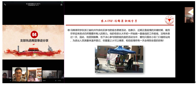最后,支部书记了解了关心每位党员同志的身体健康和学习进度,向全体党员介绍了校内目前的情况,尤其强调疫情离我们并不遥远,不能松懈,要一如既往地重视。近期随着线上工作的增加,党员同志更要保持风范,把自己的事情认真做好。
