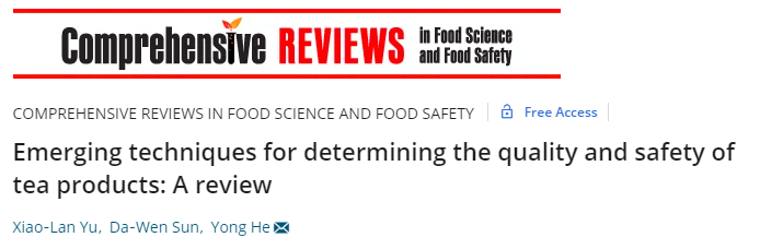 2020年8月13日,浙江大学生物系统工程与食品工程学院何勇教授、爱尔兰国立都柏林大学孙大文教授等在国际食品顶级期刊《Comprehensive Reviews in Food Science and Food Safety》在线发表了题为“Emerging techniques for determining the quality and safety of teaproducts: A review“的综述论文,何勇教授为通讯作者,Xiao‐Lan Yu为第一作者。