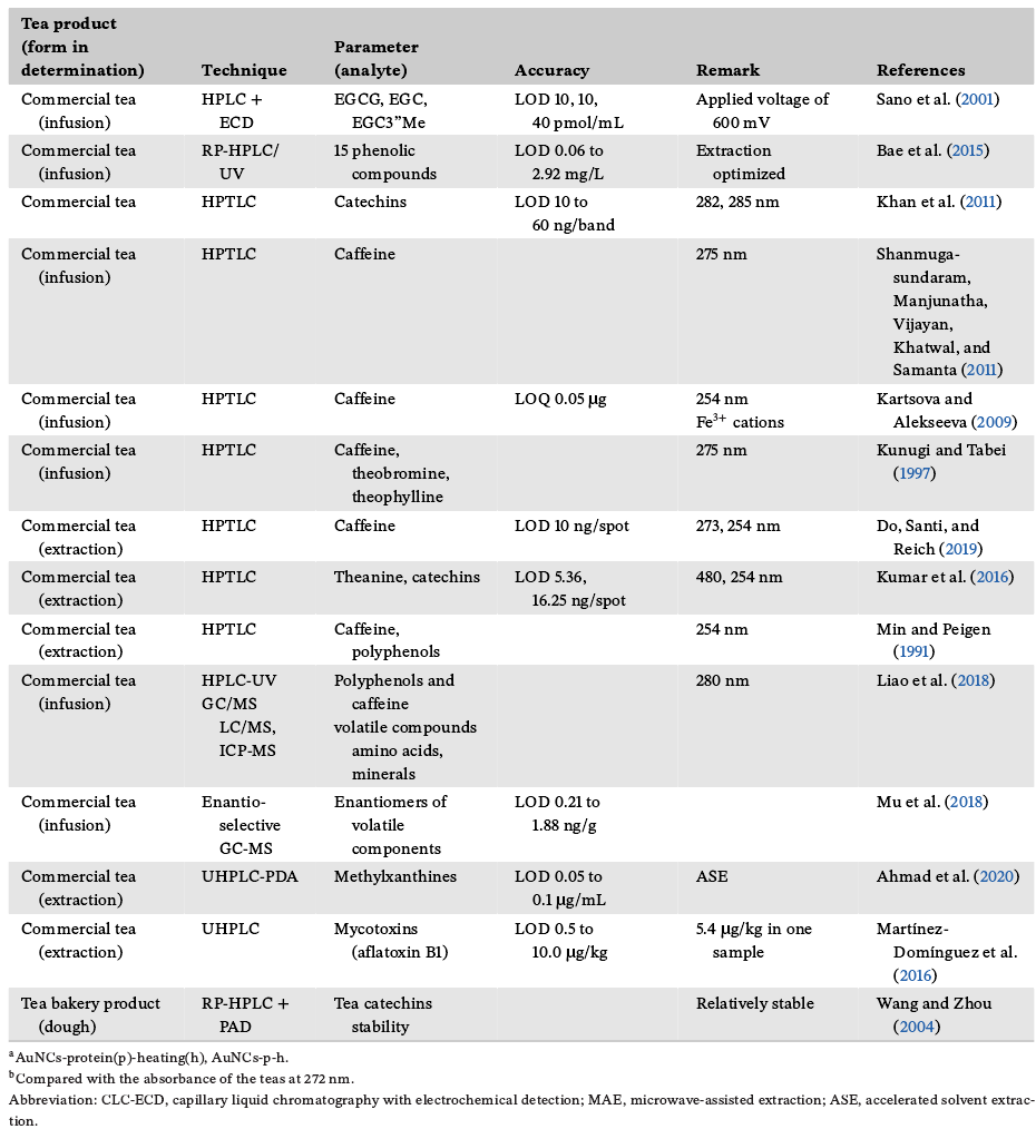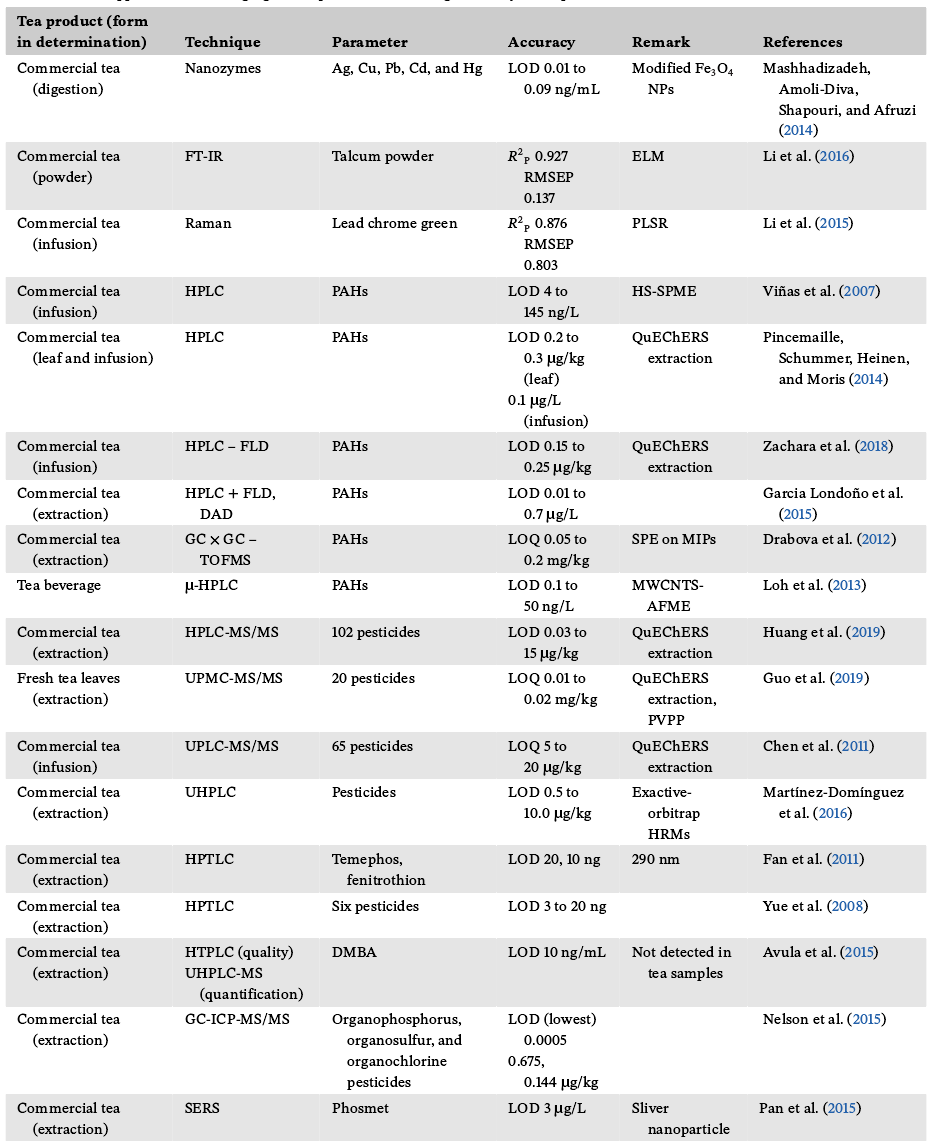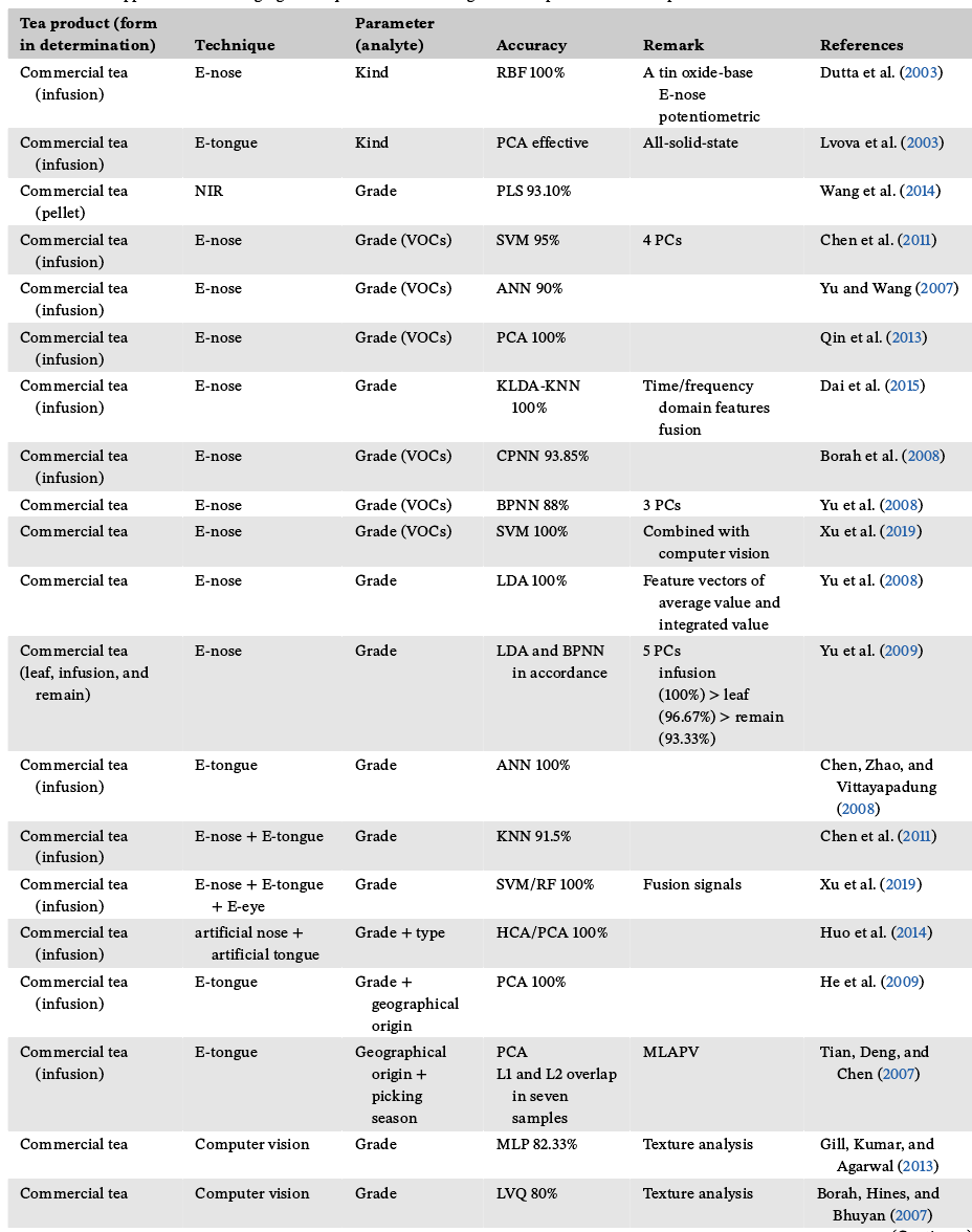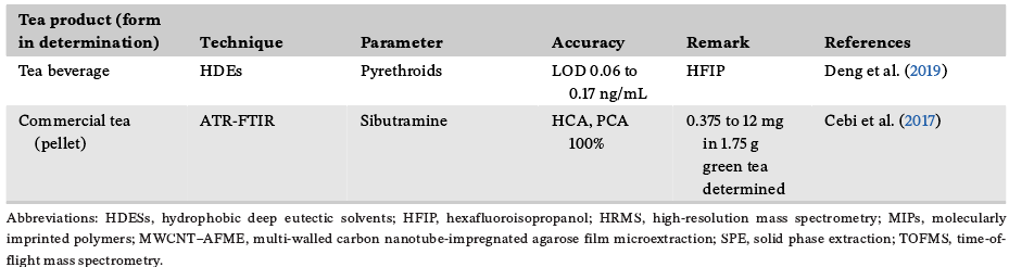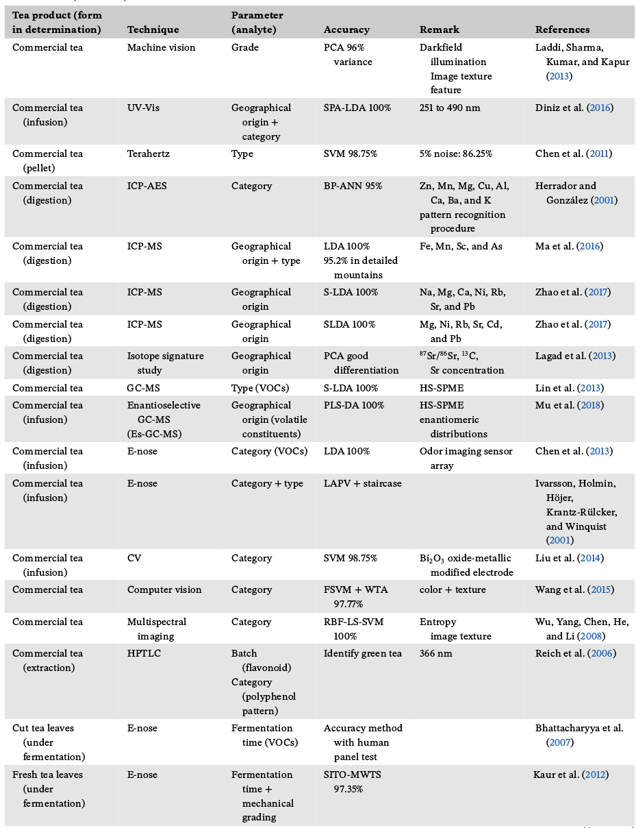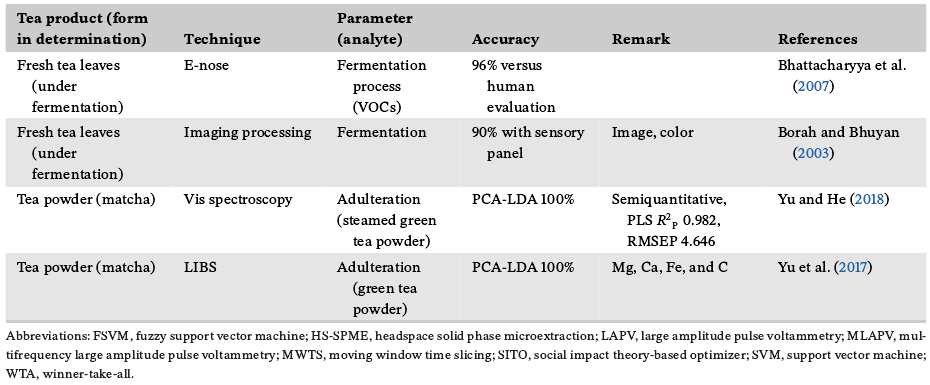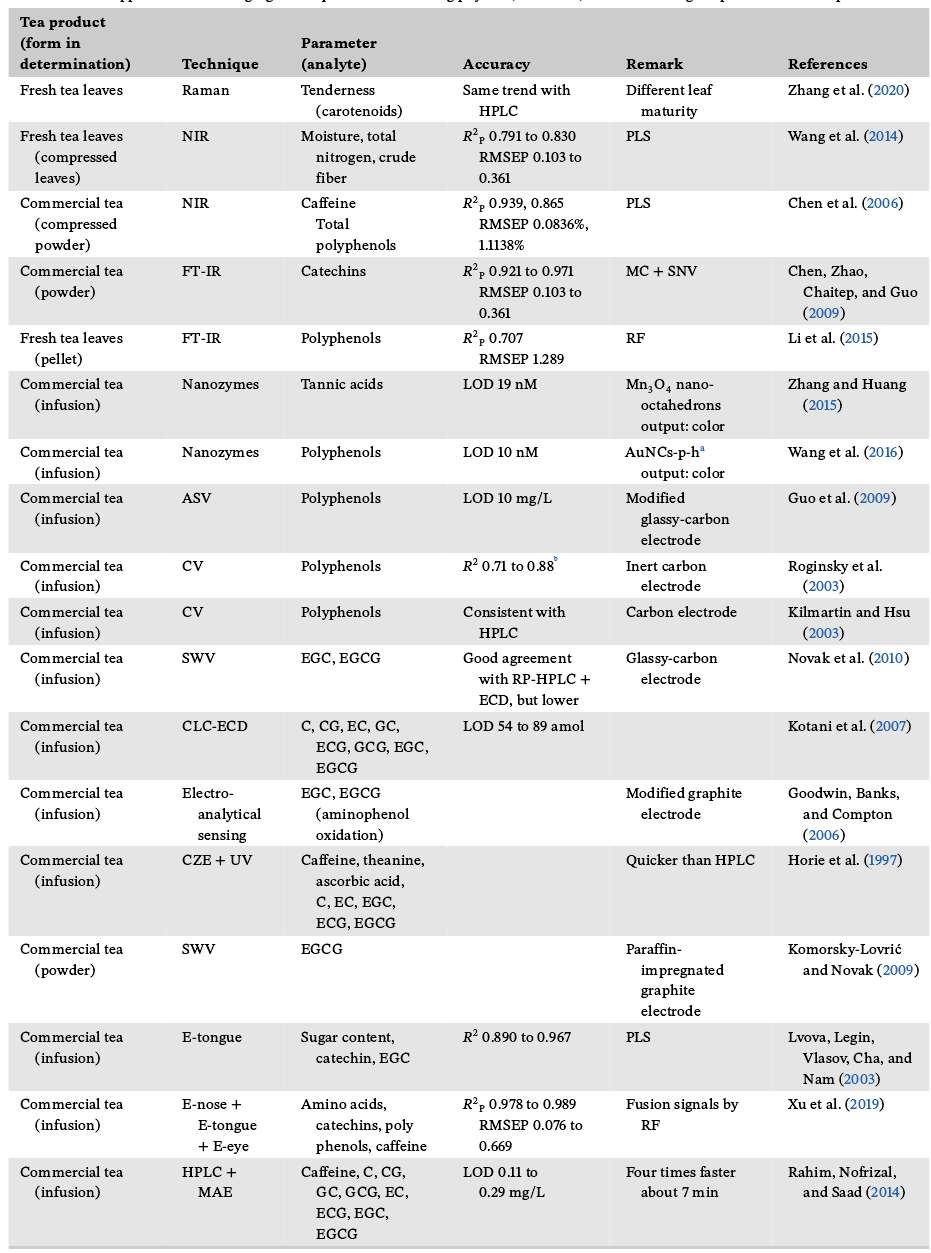 表4:新兴技术在检测茶产品物理、化学和微生物参数中的应用