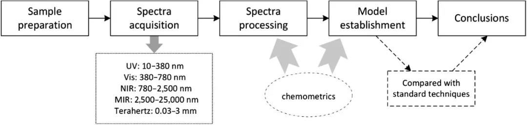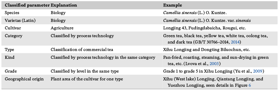 类似于其他食品,茶叶产品的质量和安全是茶叶产品的两个主要方面,包括物理参数(例如新鲜茶叶的颜色、质地和嫩度)、化学参数(例如儿茶素、挥发性有机化合物(VOCs))、分类参数(例如等级、产地来源、品种和类别)、无机污染物(例如铅铬绿)和有机污染物(例如西布曲明)。目前,大部分参数都有标准检测方法,然而这些方法费时费力且需要操作技能,特别是茶的感官品评需要专业人员来进行。这些局限性促使研究人员聚焦新技术,从而开发出能够快速、高效且当场检测茶产品质量和安全的方法。