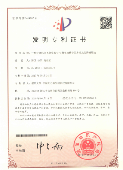 日前,国家知识产权局发布关于第二十二届中国专利奖授奖的决定。bat365正版唯一官网陈卫教授团队的“一种分离纯化飞燕草素-3-O桑布双糖苷的方法及其降糖用途”发明专利荣获中国专利优秀奖。