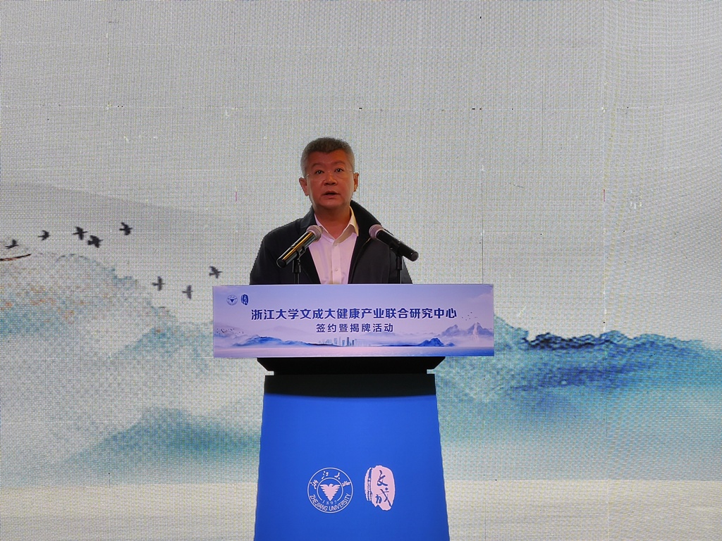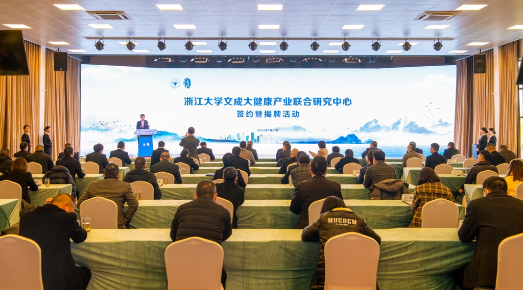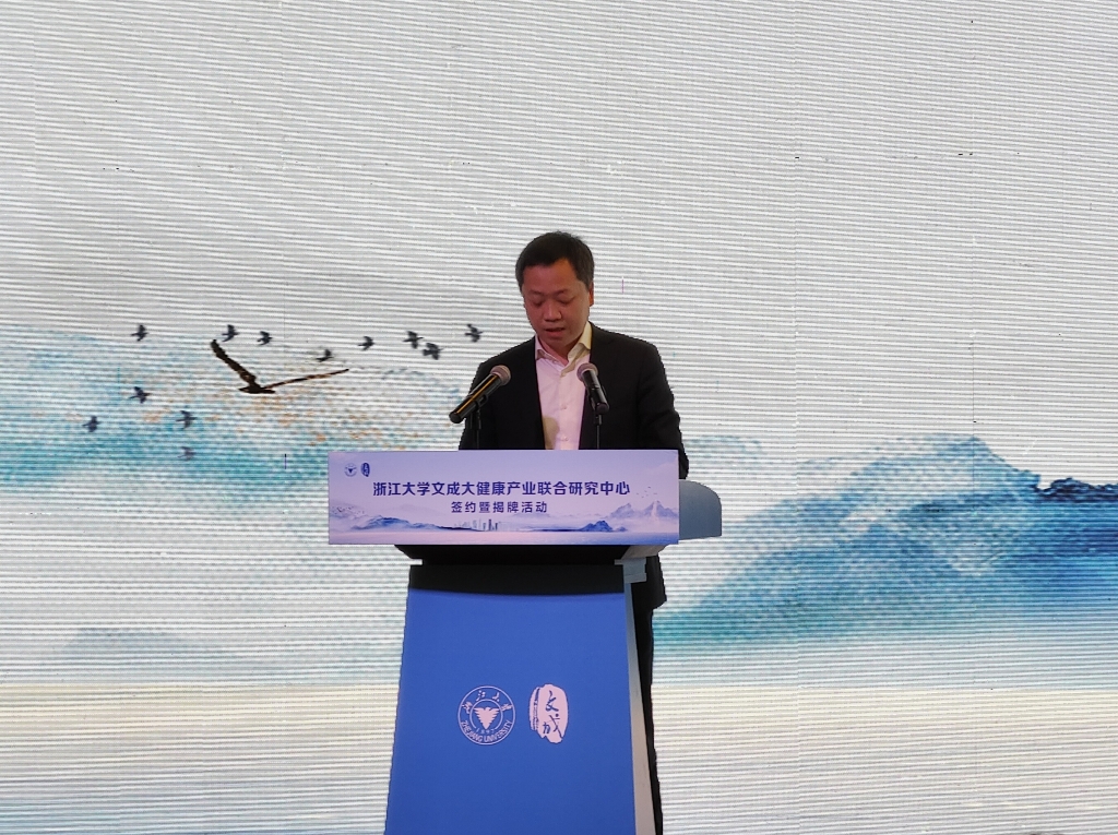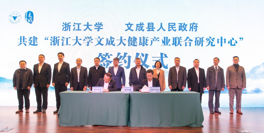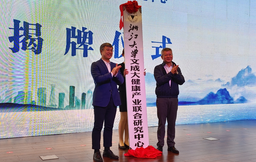 合作协议签署后,温州市副市长汪驰、浙江大学党委副书记邬小撑亲自为“浙江大学文成大健康产业联合研究中心”揭牌。