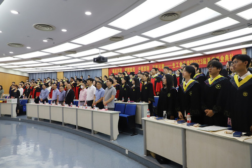 毕业典礼进入尾声,在场毕业生齐声高唱熟悉的校歌。在“树我邦国,天下来同”的高昂旋律中,顺利毕业,希望2023届毕业生前程似锦,云程发轫,万里可期!