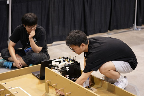 而机器人的运输和机构搭建是标准组Dawn and Darkness队遇到的最大难题。“跨国比赛让机器人运输成为棘手的问题,为避免机器人在运输途中造成损坏,我们组决定将机器人拆解后携带,但由于出国的同学都不负责机构,于是在国内的队员为我们录制了详细的机器人重装视频。这让我感觉到团队的力量,每个人都是不可或缺的一份子。”出国参赛同学,2021级本科生黄奕炜分享到。