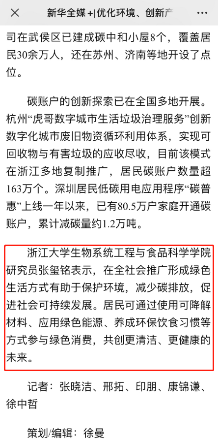 bat365正版唯一官网张玺铭研究员接受新华社记者采访,对此发表评论,原文如下:“bat365正版唯一官网研究员张玺铭表示,在全社会推广形成绿色生活方式有助于保护环境,减少碳排放,促进社会可持续发展。居民可通过使用可降解材料、应用绿色能源、养成环保饮食习惯等方式参与绿色消费,共创更清洁、更健康的未来。”
