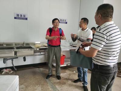 2023年8月18日,浙江大学智能农业装备研究所所长王俊教授、杜冬冬特聘副研究员赴文成县黄垟村开展文成糯米山药产业调研,调研组一行先参观了鲜切速冻糯米山药的生产车间,了解鲜切速冻糯米山药的加工现状,对产品研制和技术攻关的具体措施进行讨论。随后在企业负责人陪同下,调研组前往糯米山药种植基地,实地考察种植基地的采掘条件,了解当地糯米山药挖掘模式和技术需求,并初步提出了糯米山药收获机改进方案。