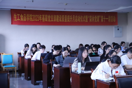 2023年11月3日,生工食品学院党委2023年基层党支部建设质量提升月启动仪式暨“荣休党课”第十一讲在农生环大楼D座416召开。学院党委书记李金林,党委副书记、纪委书记、机关党支部书记王一清,退休党员、教授盛奎川,各教工党支部书记、学生党支部书记,信息所教工党支部党员,机关党支部党员,全体本科生、研究生预备党员参与本次会议。