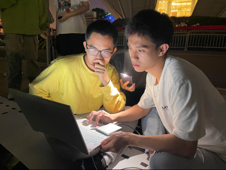 尽管受疫情影响,2022年中国农业机器人大赛未如期举行,但这也丝毫未影响同学们2023年的参赛热度。由于2023年延续了2022年的赛题,这对大一、大二首次参赛的同学提出了更高的要求,时间短、任务重、竞争压力大。但同学们夜以继日,排除万难,废寝忘食。考虑到今年比赛难度大,赛方提供的场地不能满足众多队伍调试要求,学生想尽各种办法把各种材料带到武汉,在场馆空地上搭建了一个完整的比赛场地。比赛前夜,学生在已经熄灯的场地上继续调试到深夜,用手机的灯光照亮不断追求卓越的步伐。