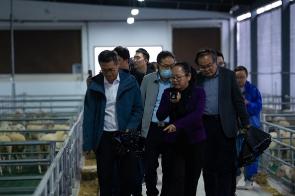 汪开英向农业农村部和省内外专家领导汇报介绍共富羊场和智能机器人