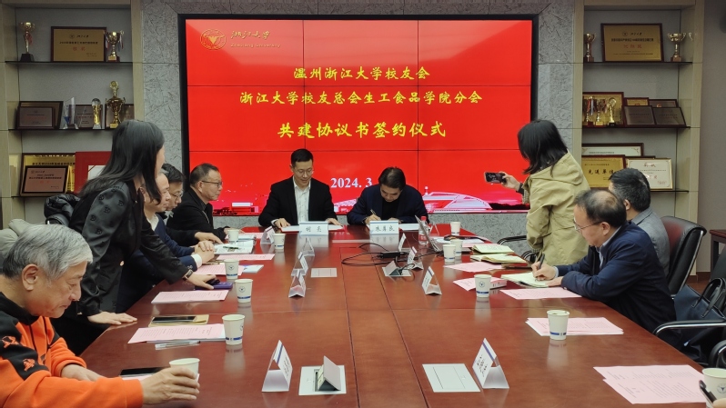 交流会上,温州浙江大学校友会会长胡亮,浙江大学校友会总会生工食品学院分会会长朱勇良分别代表地院校友会签署温州浙江大学校友会-校友总会生工食品学院分会共建协议。温州浙江大学校友会拓展型党支部书记、校友总会生工食品学院校友分会副会长池昌荣主持共建协议签署仪式。温州浙江大学校友会秘书长蒋利丹、副秘书长林祥烁,温州市食品行业协会粮食产业联合会会长、温州快鹿集团董事长李明,浙江小智机器人科技有限公司总经理诸捷凯等企业家校友,校友总会生工食品学院分会常务副会长、学院院长刘鹰,会副会长应铁进、李建平、李忠先、林国平,秘书长邹黎明、副秘书长郝云彬等出席并见证共建协议签约。