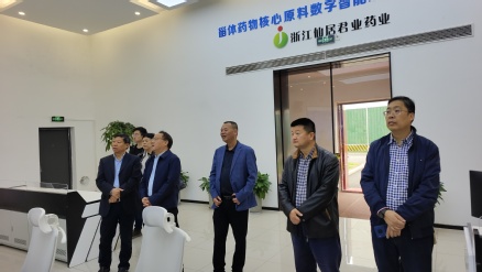 刘鹰、丁海忠一行在学院农机77级校友、浙江仙居君业药业有限公司董事长张汝金及公司总经理张峥斌的陪同下考察参观了位于仙居县经济开发区的君业药业智能工厂,听取了张汝金董事长、张峥斌总经理关于君业药业从1998年租房起步创业,到现在拥有仙居、江西、内蒙古等4个生产基地,在上海、杭州、美国纽约设立研发中心和办事处,年产值超10亿,成为一家专业从事甾体激素类原料药研发、生产、销售的科技型企业,在孕激素领域市场份额全国最大,同时也是中国唯一一家做激素高活性药物的CDMO企业,拥有国家企业技术中心(君业药业研究院),行业第一家自动化、智能化、数字化、年产千吨级甾体原料生物制造智能工厂,荣获包括浙江省科技进步一等奖(2023年)在内的一批重大科技成果,承担多项国家级、省部级重点科技研究项目的现代化专精特新“小巨人”企业、制造业单项冠军企业的团结、拼搏、创新、超越,红色引领、绿色发展、创新跨越的企业发展历程介绍。
