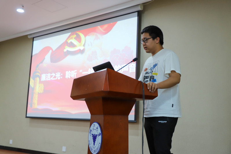 他们以史为鉴,回顾廉政建设历程。朱飞翔以时间为线索,详细梳理了党风廉政建设的发展历程。杨惇泓从古代廉洁文化入手延伸到现代,阐述了廉洁文化的内涵,加深了大家对新时代廉洁文化建设的理解。陈锦从《中国共产党纪律处分条例》出发,剖析了党的纪律处分相关规定,并结合反面案例,强调了遵守党规党纪的必要性、重要性。