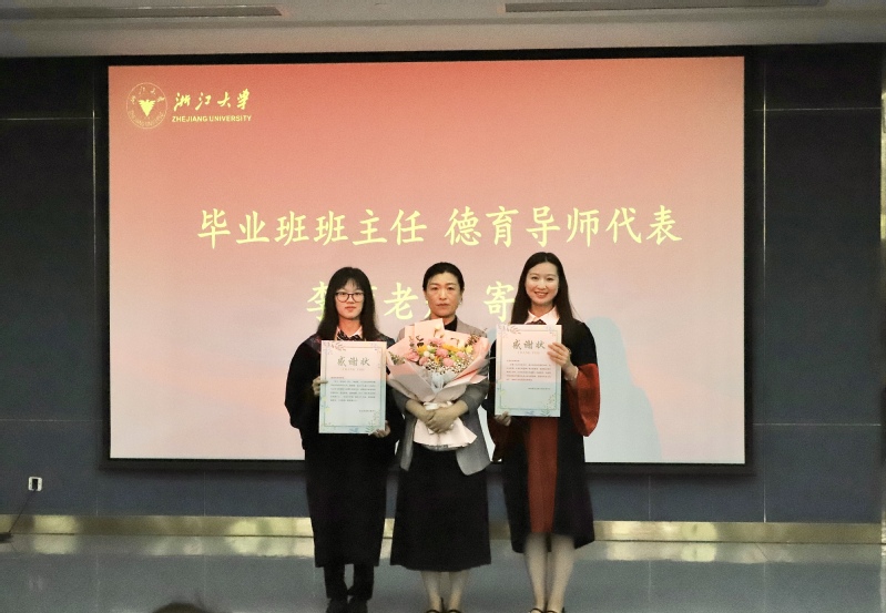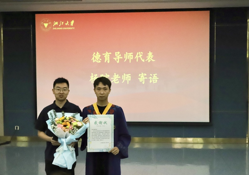 毕业班学生代表为毕业班班主任代表、毕业班德育导师代表送上感谢状并献花。毕业班班主任、德育导师代表李莉寄语毕业生要保持初心,母校永远是大家坚实的后盾。毕业班班主任鲜于运雷寄语毕业生要保持乐观的心态,并且祝福毕业生前程似锦。德育导师代表杨暄寄语毕业生要秉持求是创新精神,保持对知识的渴望和好奇。德育导师代表叶尊忠寄语毕业生要内心强大,无惧前行道路上的风雨,为祖国现代化建设添砖加瓦。