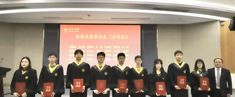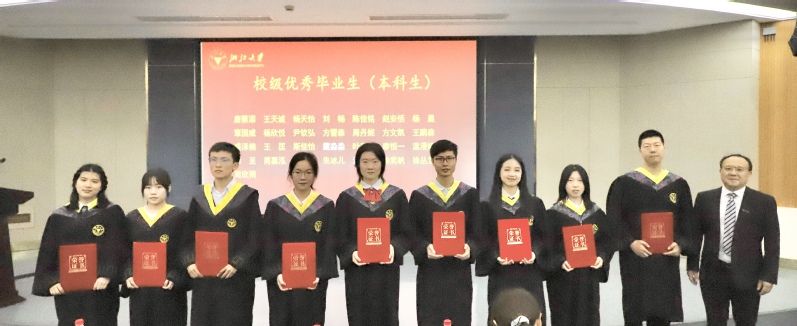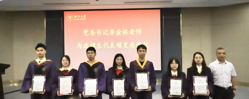刘鹰为省级优秀毕业生、省级优秀毕业研究生、校级优秀毕业生、校级优秀毕业研究生、本科生十佳论文获奖者颁发证书,李金林为选调生、赴重点单位及地区就业代表颁发感谢状,刘东红为校友联络员颁发聘书,王一清向毕业生代表赠送纪念品。