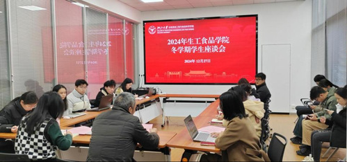2024年12月27日下午,生工食品学院在农生环D座一楼和合文化之家召开2024年冬学期学生座谈会。学院党委书记李金林、党委副书记王一清、专职组织员张文馨、团委书记梅玫、团委副书记闫凯亚及本科生、研究生学生代表出席会议。座谈会由王一清主持。