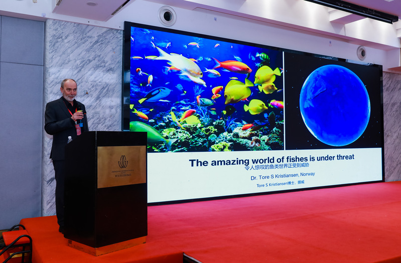 Tore Kristiansen研究员以神奇的鱼类世界为报告主题,向大家展示了丰富多彩的水生生物族群,包括地球上体型最大和最小的鱼,寿命最长和最短的鱼等等,同时向大家介绍了鱼的感官、智慧,以及由于生态环境恶化,鱼类面临的生存威胁,并希望通过水产动物福利的发展,给鱼一个更好的生存空间。