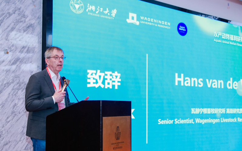 来自荷兰瓦赫宁根畜牧研究所的Hans van de Vis高级研究员代表国外参会的专家学者进行致辞,他指出现在全世界越来越多的人开始聚焦水产动物福利开展研究工作,我们需要更多的交流合作,推动科技和产业的发展。